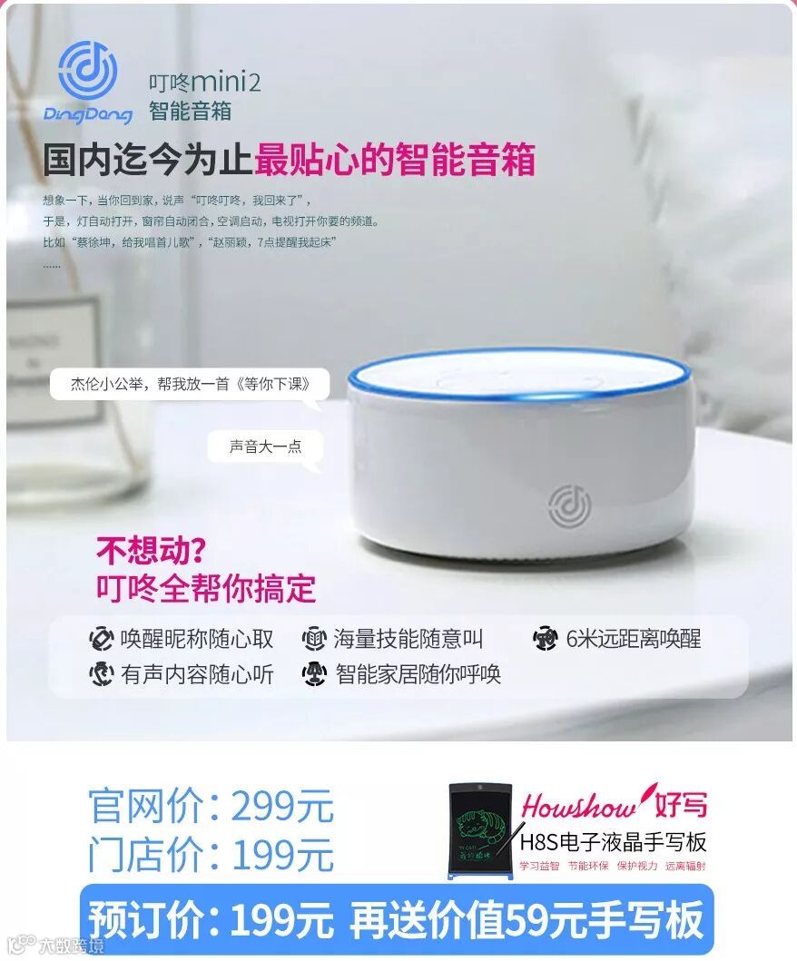 随着智能家居的兴起,你的家也需要一位智能管家——叮咚智能音箱,它不仅仅是一个音箱,还能提醒你起床,能语音控制音乐播放与暂停,还能控制家里其他电器等多种功能。原价299元,现在线上预订仅需199元;