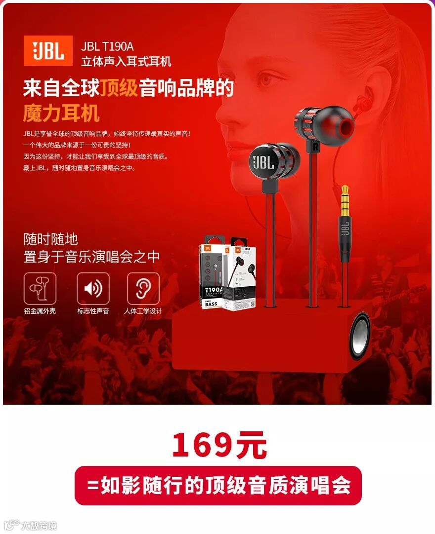 除此以外,JBL T190A入耳式耳机,同样有优惠,活动期间仅售169元!