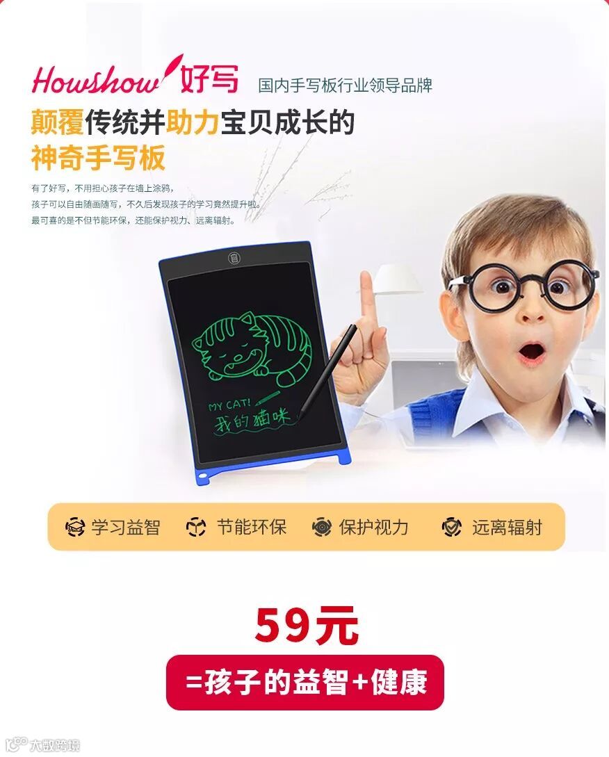 益智又不伤眼的好写液晶手写板五一期间仅售59元,有了好写,不用担心孩子在墙上涂鸦,孩子可以自由随画随写,坚持一段时间后,发现孩子的学习竟然提升啦。最可喜的是这个柔性液晶手写板不但节能环保,还能保护视力、远离辐射。