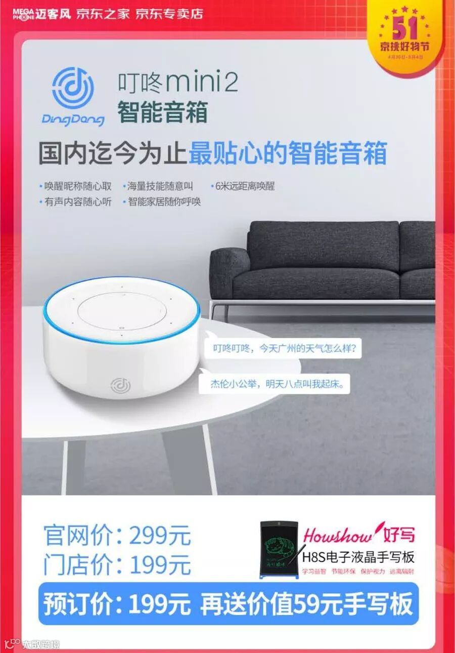 即日起,凡通过“京挑好物迈客风”微信公众号报名预订叮咚智能音箱,五一放假期间,到任意一家京东线下专卖店购买均有优惠,省钱的同时,还有壕礼相送哦!