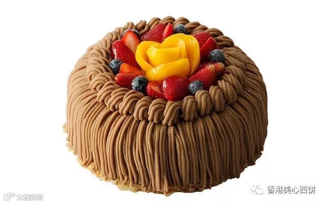 栗子蓉包裹着整个蛋糕,丰富的水果铺面,外形高贵大方。