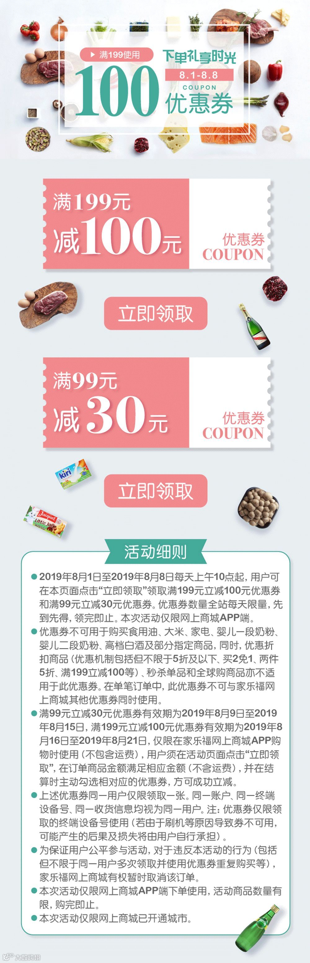 199减100元券和99减30元券等你来领!