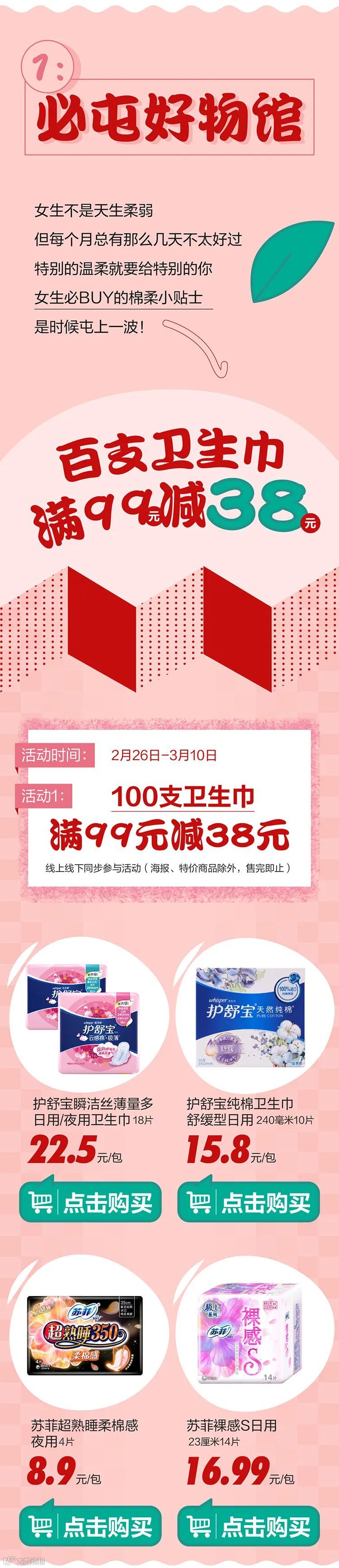 海珠店 |【华润万家】嗨购女神节: 500品牌满129减20!百支卫生巾满99减38!