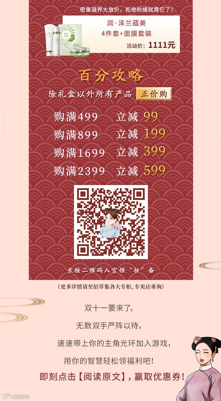 康王店 | 【佰草集】双十一狂欢季,化身宫廷女主,凭智慧领取优惠