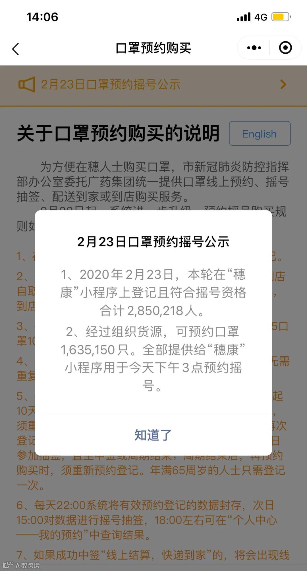♥每人每次中签后可获得5个口罩,中签日起5日内不再参与摇号;中签5日后如需预约,须重新预约登记。如有未中签,可于次日预约时间内提交申请,参与下一轮摇号。