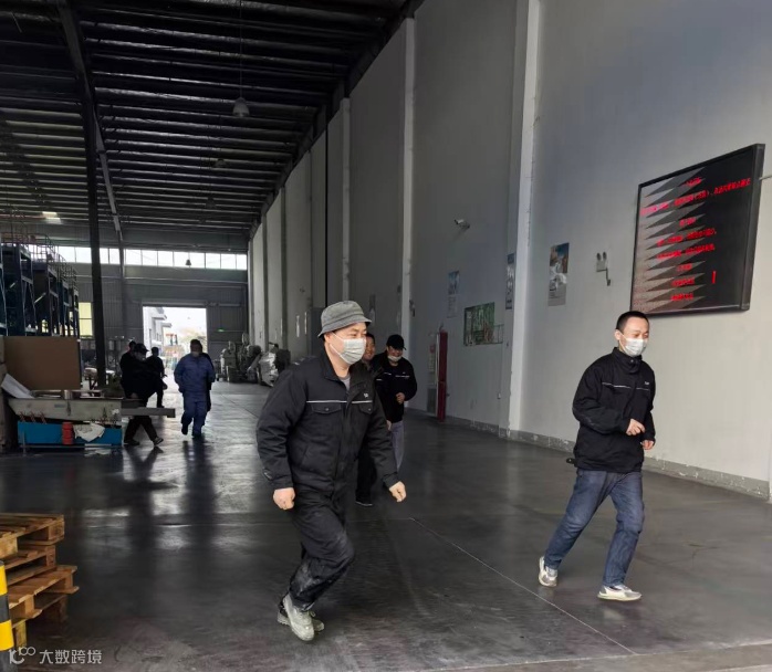 随着手动报警器响起,全体人员立即停止作业,迅速沿指定路线有序撤离。过程中无违规逗留情况,所有人员均安全、快速地集结至厂房主通道南面集合点。