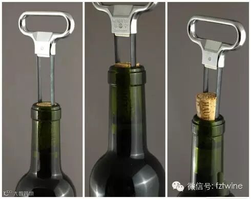 第四种是T开瓶器,不太适合女孩子使用,是要将螺丝锥旋入软木塞,然后用力拔出来!