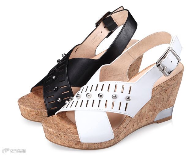 ・°°☆厚底坡跟铆钉交叉带凉鞋☆°°・