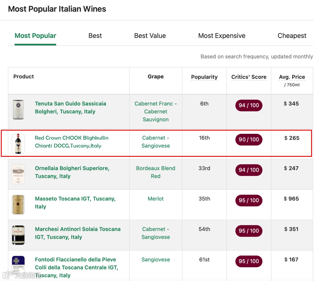 在20大最受欢迎的意大利葡萄酒榜单中,布莱兄弟排名第16,仅次于西施佳雅、马赛多、索拉雅这些大名庄。意大利成千上万款酒,能挤进前20名,由此可见这个酒在国际酒友中的地位。