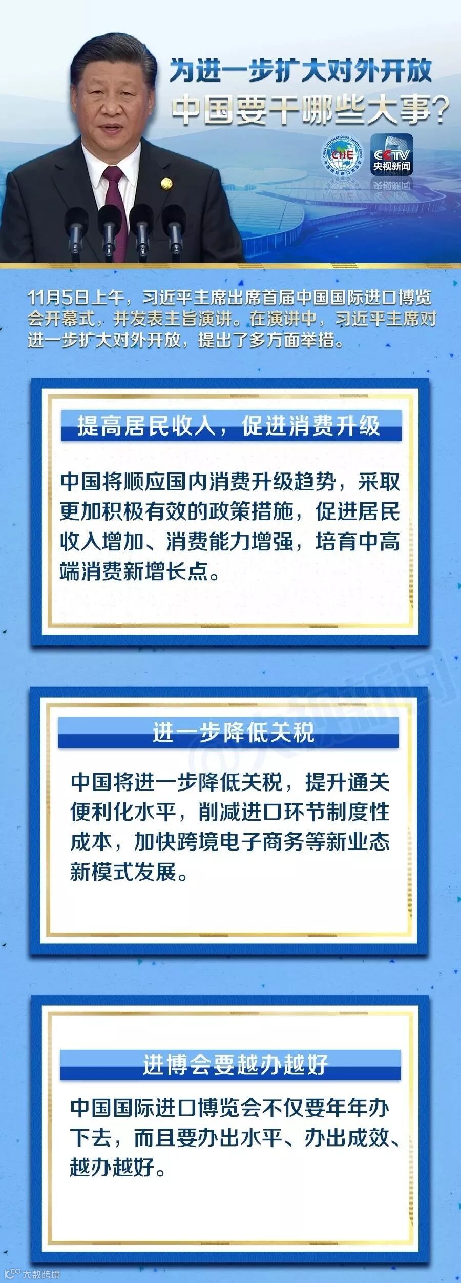 11月5日,首届中国国际进口博览会在上海开幕,开幕式发表主旨演讲。