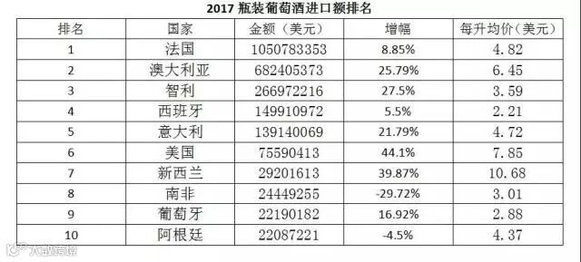 据美国媒体CNBC报道,2017年,美国出口中国的红酒贸易额下滑,而同期中国进口澳大利亚的红酒贸易额则激增63%,达到8.48亿澳元。2017年也是澳大利亚红酒产业出口中国市场最为“丰收的一年”。