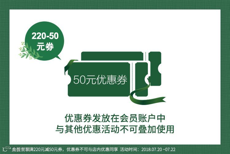 积分换20元直用券、5倍积分、满220元减50元券