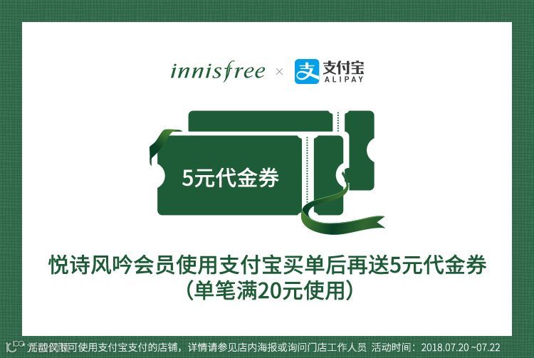 活动期间到innisfree消费满220元
