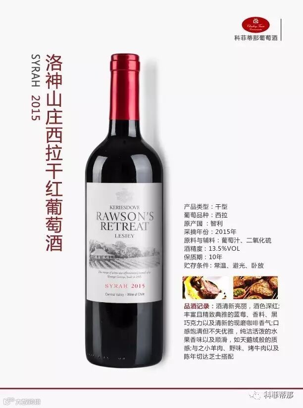 洛神山庄西拉干红葡萄酒适合配餐:搭配野味、茄汁通心粉以及硬奶酪。活动价:69元/瓶。