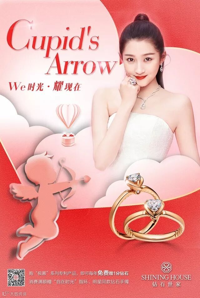 以丘比特的爱神之箭为设计灵感,钻石世家“爱We”系列浪漫上市:寓意爱与浪漫的心形钻石,由彼此相拥交错的翅膀簇拥。质感K金戒环,镂刻轻盈的羽翼,更显灵动精致。