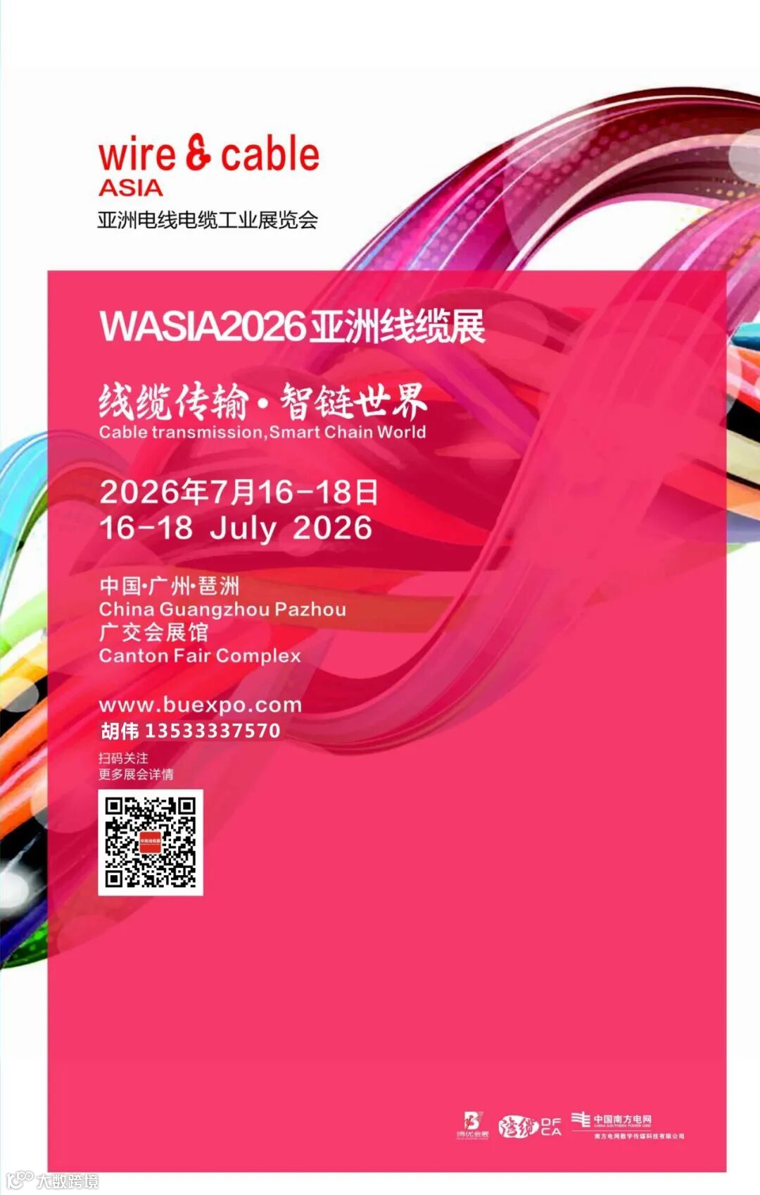 致力分享中国电线电缆行业最新资讯平台! 全球优质电线电缆产品一站式采购平台---2024亚洲电线电缆工业展览会 时间:6月26-28日 地点:广州.中国进出口商品交易会琶洲展馆 胡伟13533337570