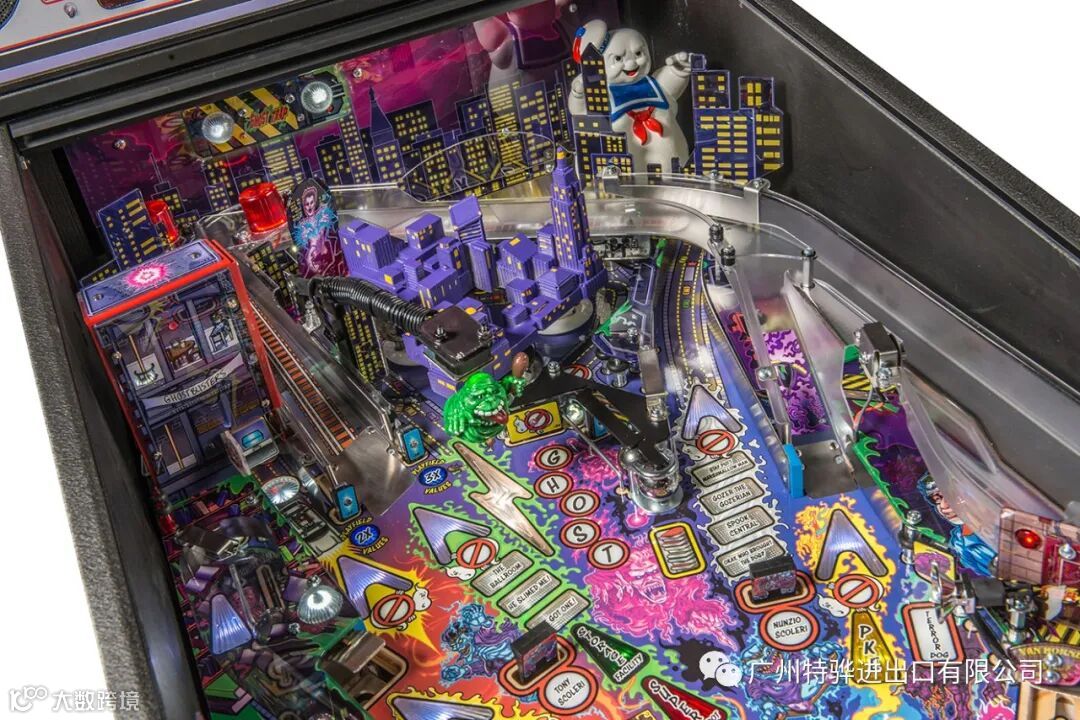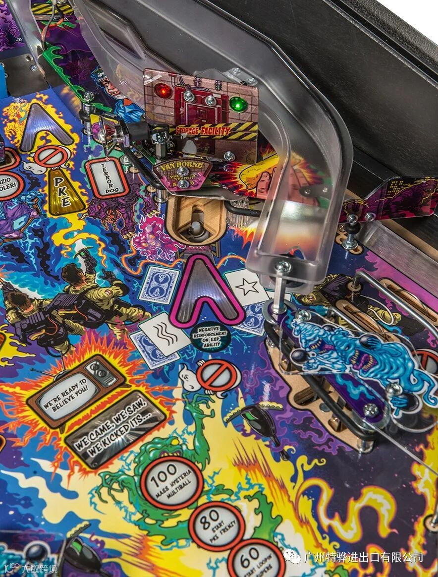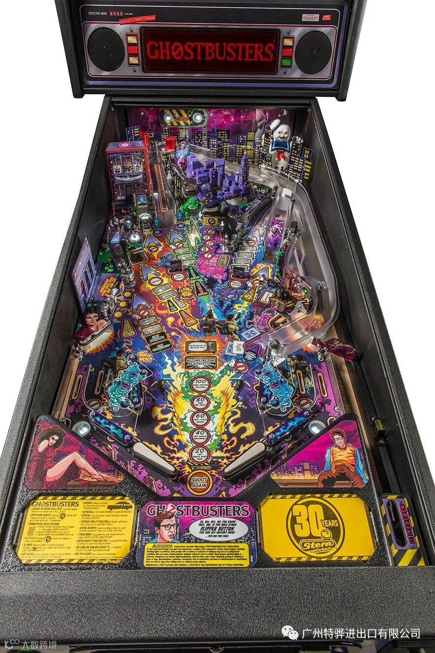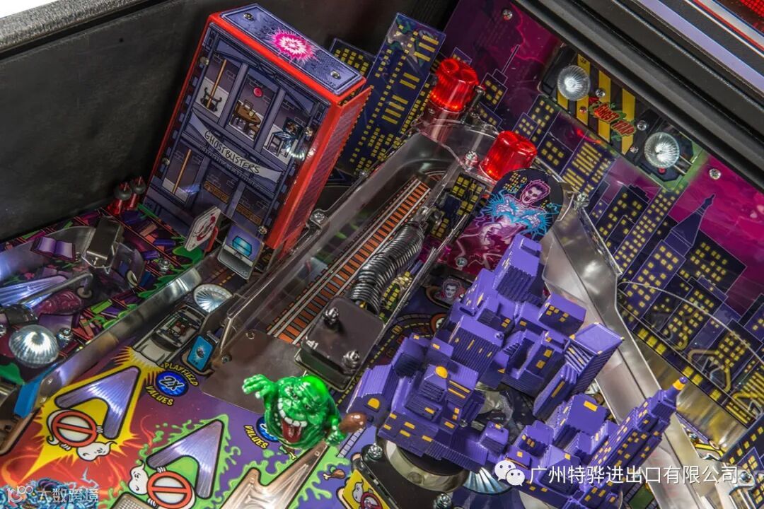 Ghostbusterspinball is designed to be easy to play but difficult to master. It features amoving interactive Slimer toy target and a fresh distinctive layout thatintegrates traditional pinball devices with unique multifunction two-way rampsfeaturing a magnetic diverter and scoring switches. In addition, the gamefeatures a modern take on a ball transfer target, combative open field droptargets, a ball eject target, a captive ball target and custom molded toys.
