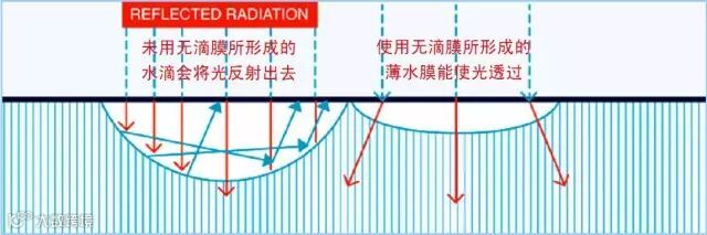 通过添加防露滴功能因子,可增加膜的表面弹性,对减少膜下面的水滴形成有显著效果,提高透光率并防止水滴落于作物表面。