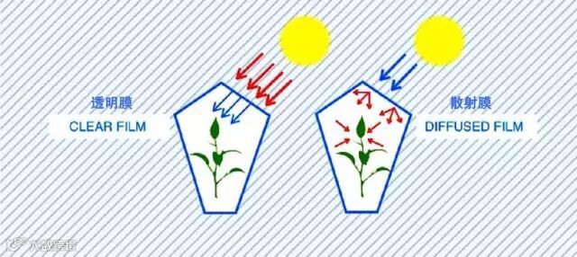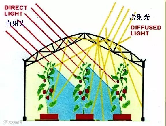 通过提高光的发散效果大大提高植物的光合作用,尤其是对于那些自身遮荫较多,生长较高以及棚架类植物。