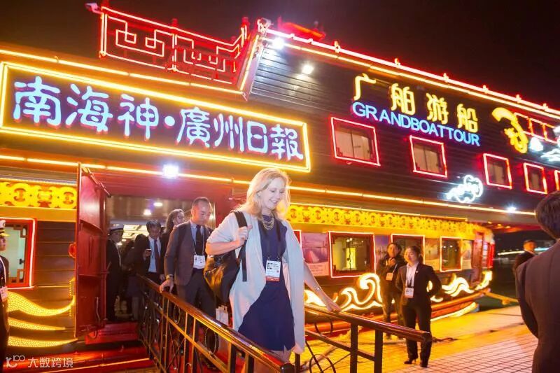 今晚21时30分,游船缓缓驶出广州塔码头,2017广州《财富》全球论坛资深媒体顾问丹尼尔·凯尔与同事们来到游船最高的二层平台,把酒临风。他与同事和合作伙伴们,盛情邀请广州参考记者一同合影。