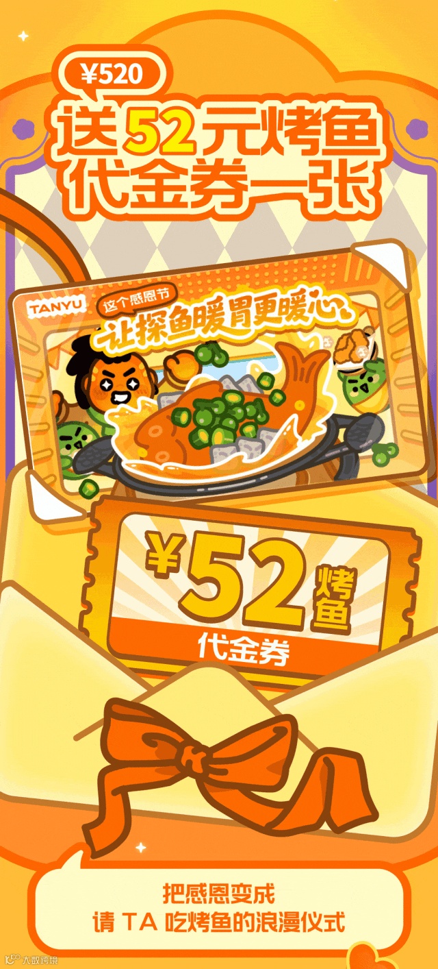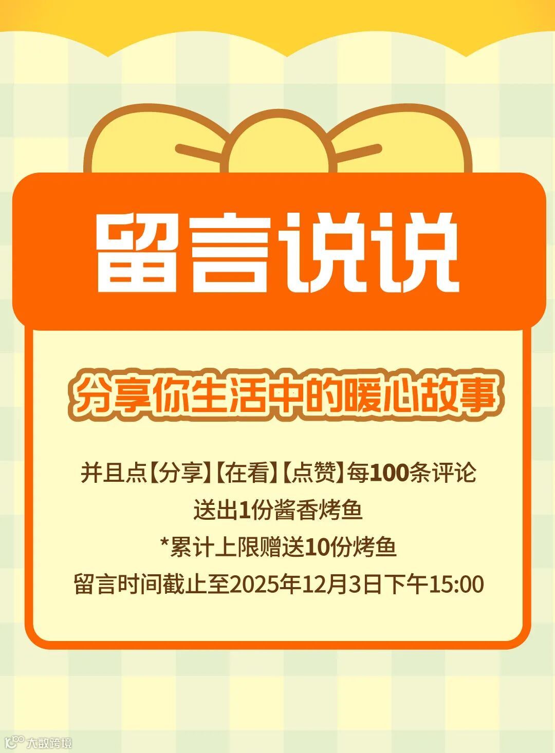 注:1.推文留言活动时间:2025年11月26日-2025年12月3日,2025年12月4日将在留言区公布留言中奖名单,奖品为烤鱼一份;2.奖品以卡券形式发放至会员卡包,具体卡券有效期与使用规则,可在【探鱼烤鱼】小程序 -【我的】-【优惠券】卡券详情中查看;3.仅限大陆地区探鱼餐厅堂食使用,华为店不参与活动;4.每个订单仅可使用一张卡券,不可与其他优惠同享,餐前不设外带;