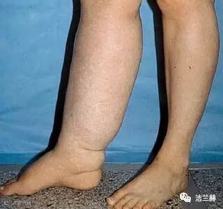 原发性的,先天性淋巴水肿在脚上的表现通常开始于脚趾并延伸到脚的背部。 从这里,它通过脚踝传播到小腿和大腿。
