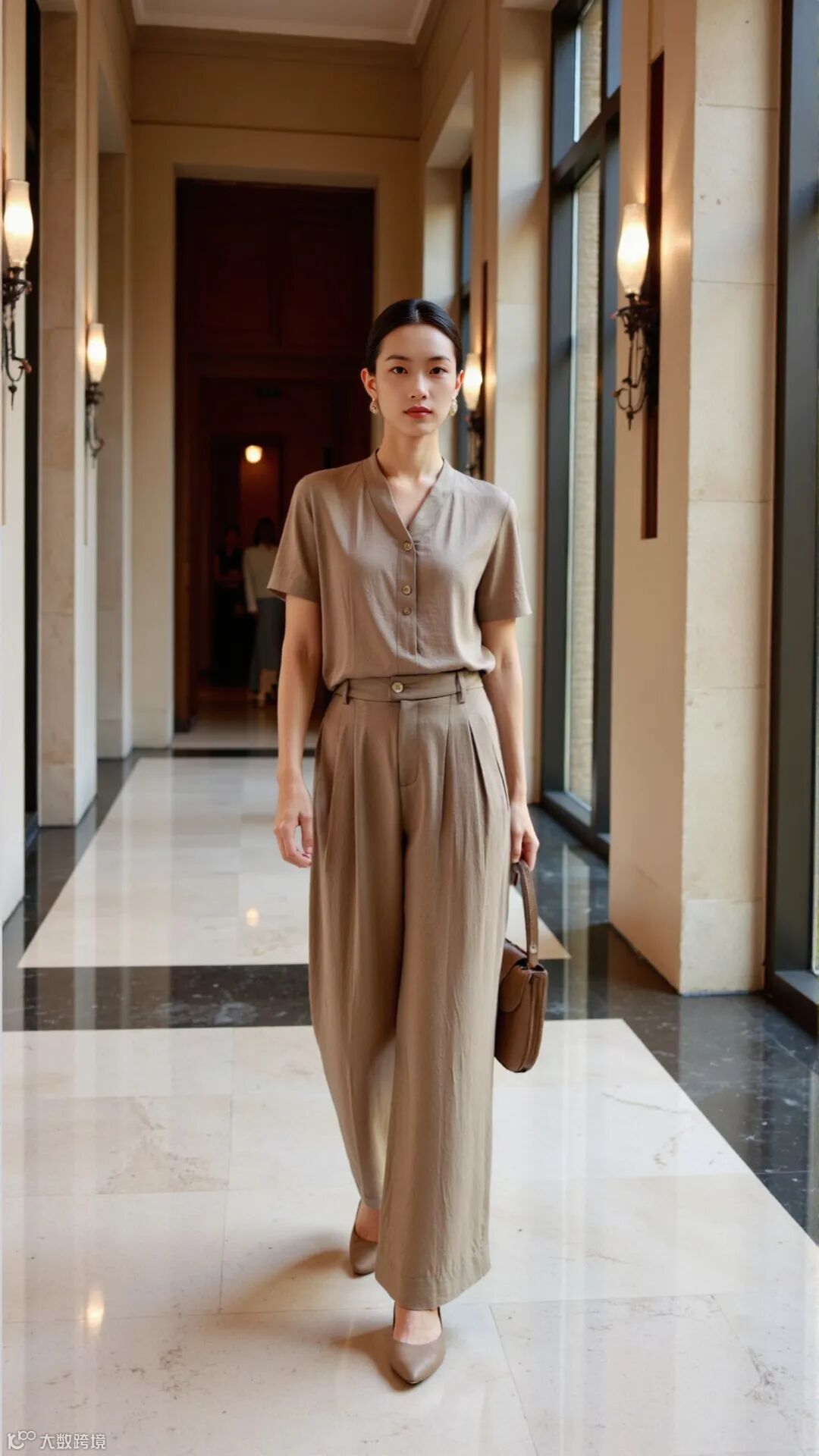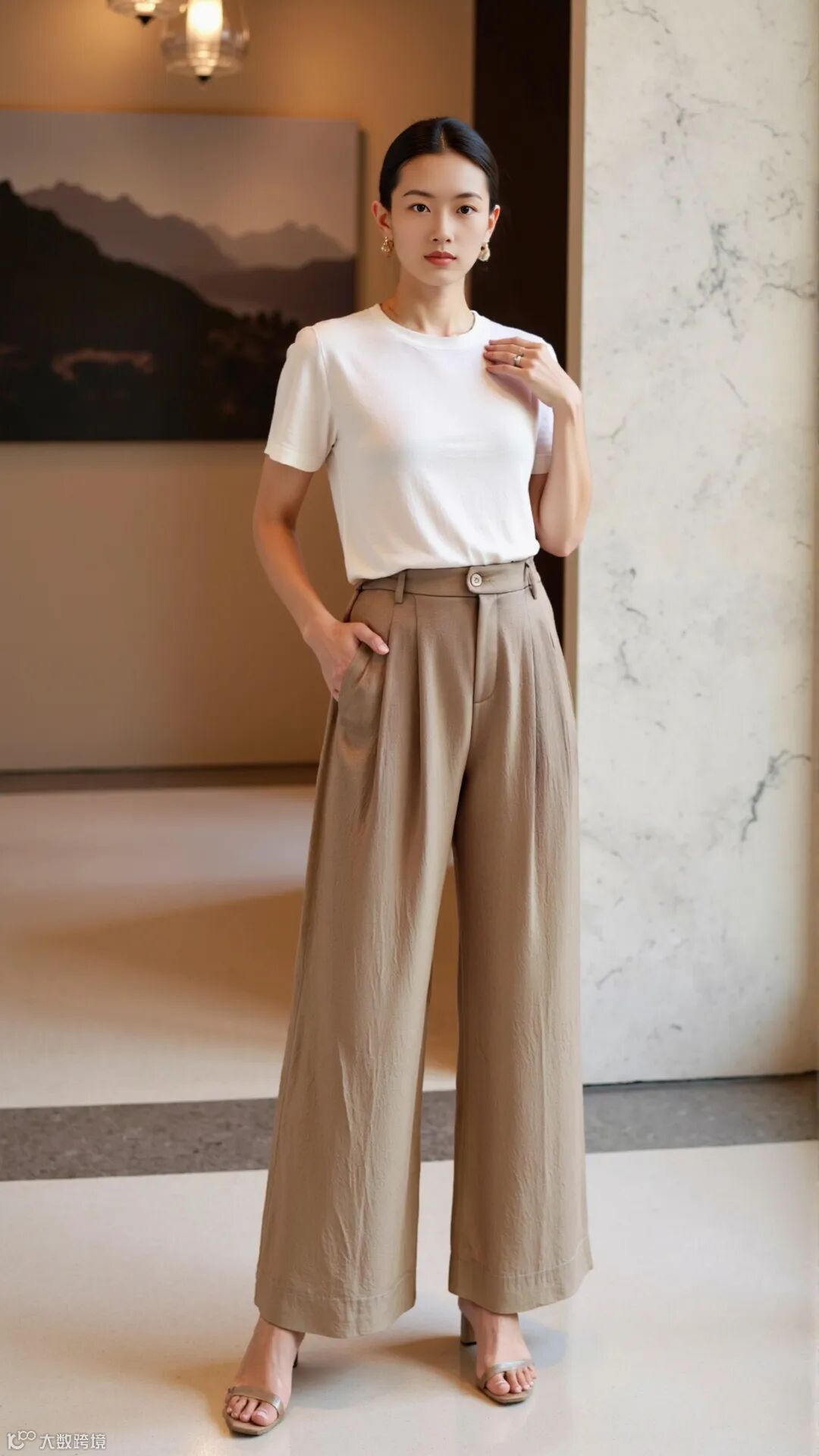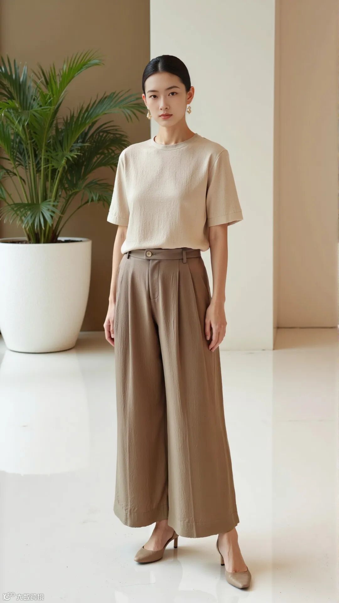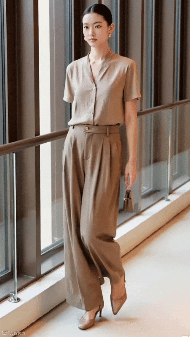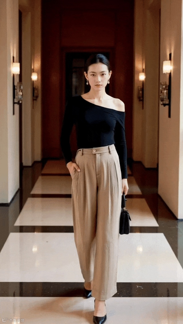 开门襟双褶宽腿裤