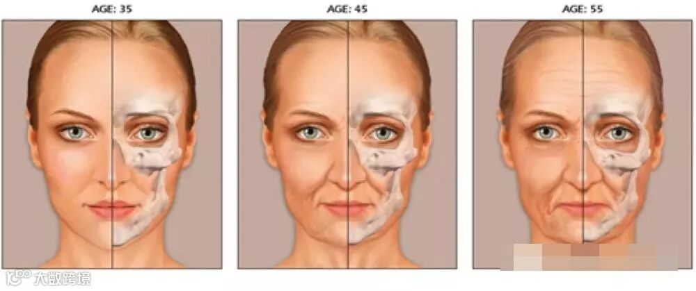 3、 轮廓和容量的改变:年轻的脸庞轮廓丰满、圆润,而随年龄增加,逐渐出现皮肤松弛,轮廓逐渐变得不再清晰,脸颊凹陷、面部线条开始下垂、眼袋出现。