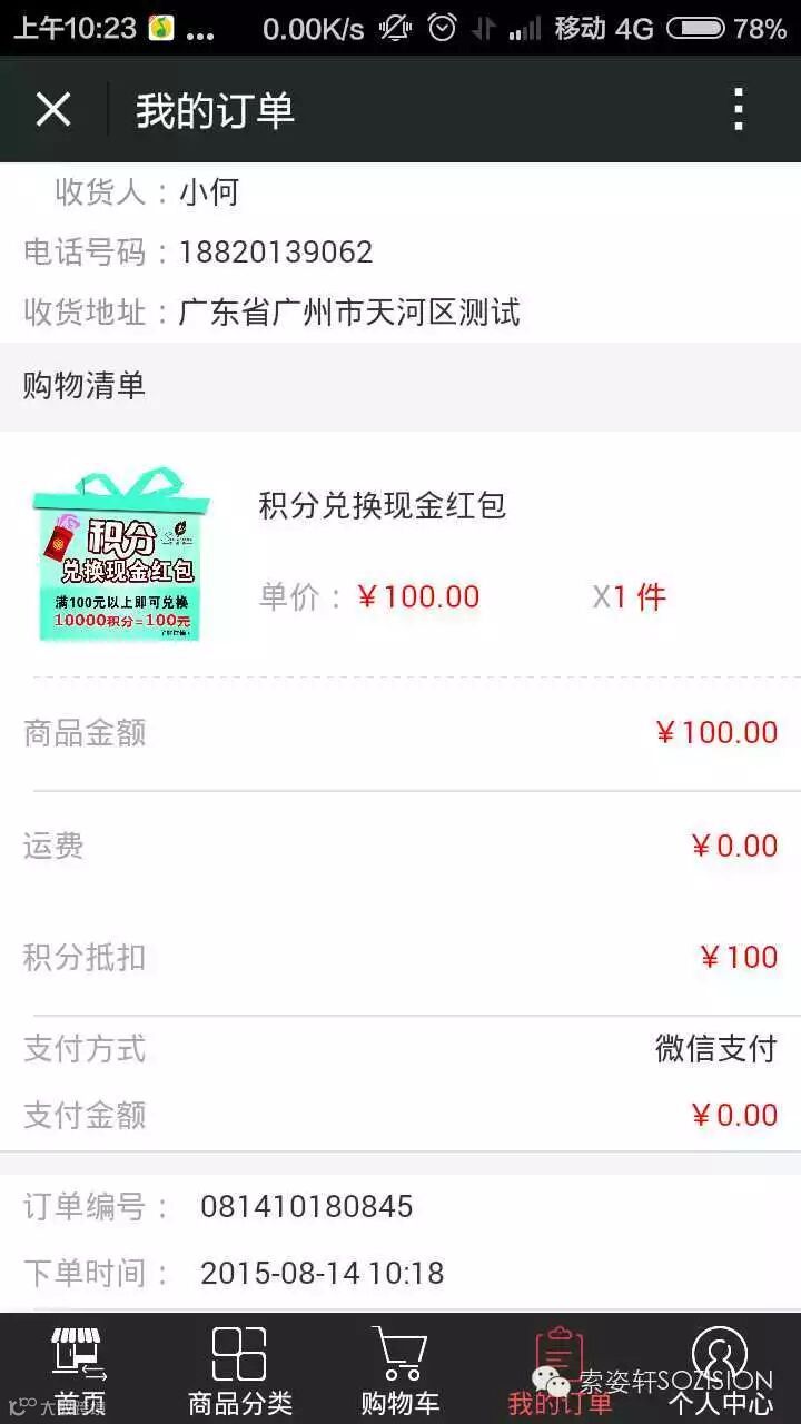 你可以发现,用了10000的积分抵扣100元购买了一个100元的红包了。