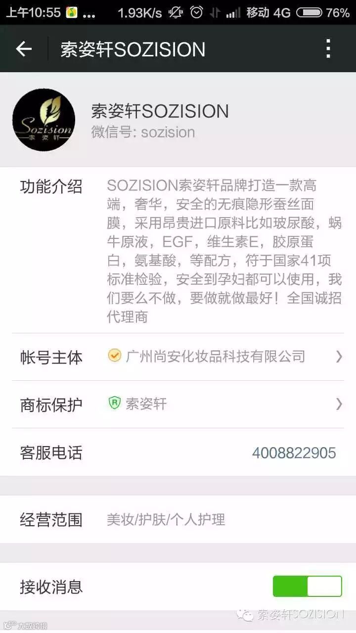 SOZISION索姿轩品牌打造一款高端,奢华,安全的无痕隐形蚕丝面膜,采用昂贵进口原料比如玻尿酸,蜗牛原液,EGF,维生素E,胶原蛋白,氨基酸,等配方,符于国家41项标准检验,安全到孕妇都可以使用,我们要么不做,要做就做最好!全国诚招代理商