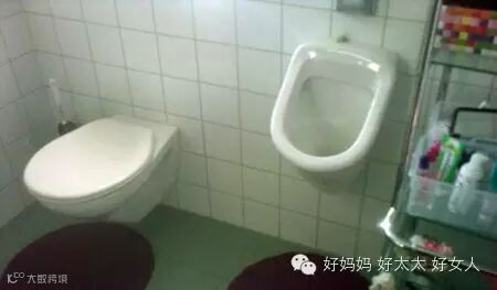 7、几个月前我提到德国人家里除了马桶还装有小便池,这样男士小便时就不用搞得马桶里尿液四溅,对女士会更卫生。这次到德国人家里特意拍了张照片。这家的卫生间并不大,不到5平方米。