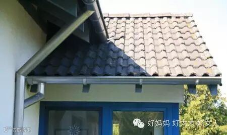 3、德国民居房顶都铺着瓦片,但是没有瓦当这种东西,他们在房檐处都装有横向的金属拦水槽。下雨时雨水会顺着倾斜的房顶流到拦水槽,再通过外墙树立的排水管直接流到下水道。所以德国的房檐下永远不会出现水帘洞般的景象。
