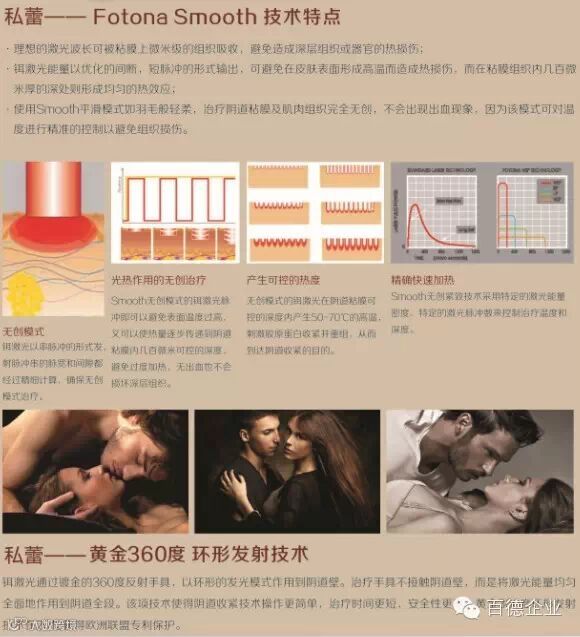 现在,百德企业拥有了一套完美的解决方案:德国进口“私蕾”fotona可以让女性无痛无创无休息期,达到最佳的阴道收紧的效果。这是百德企业引进德国顶级仪器。