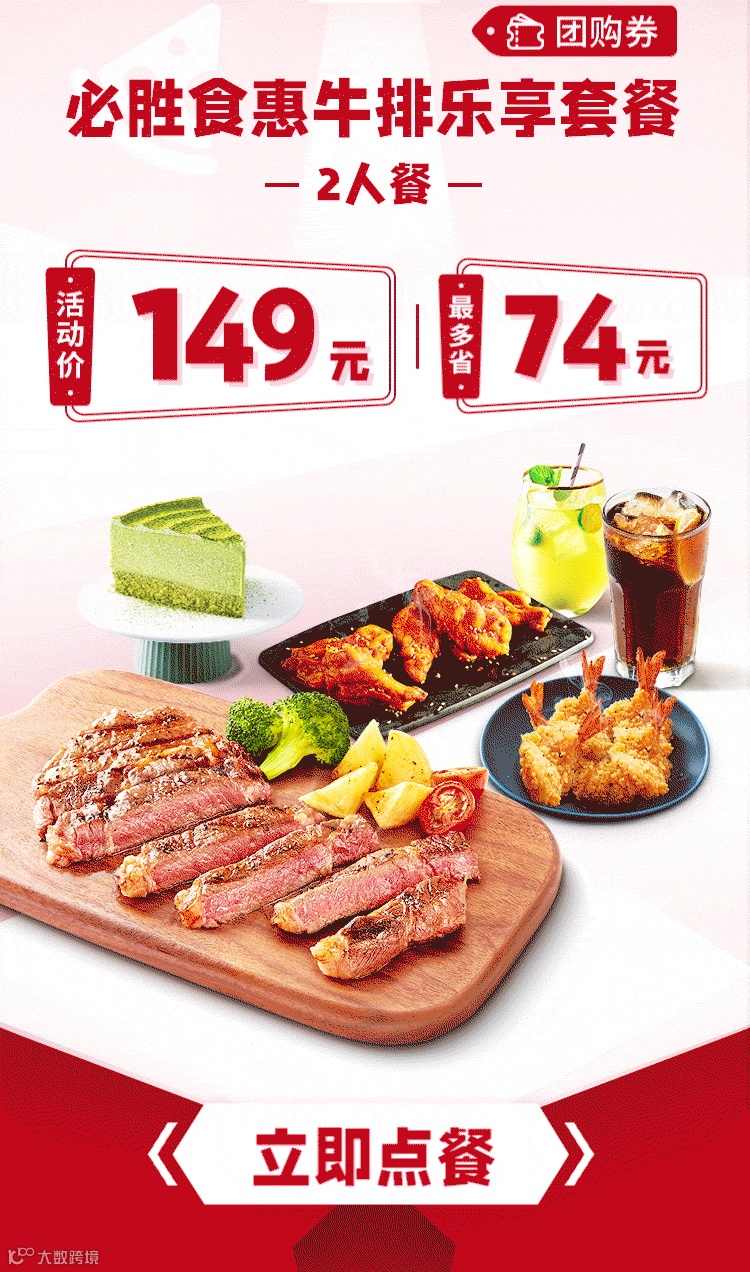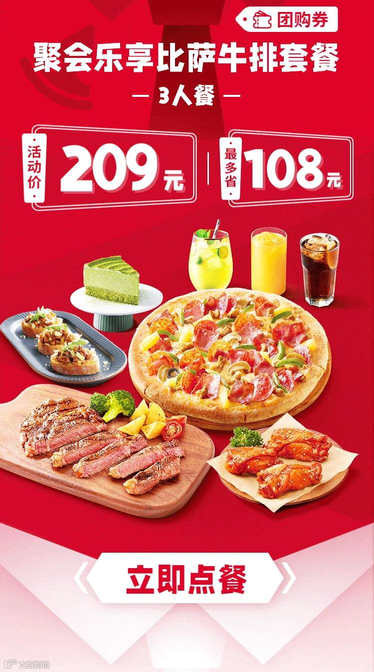 2022年6月13日-2022年6月26日期间前往必胜客APP商城页面可以指定金额选购相应产品兑换券,凭券兑换相应套餐,具体电子券金额及可兑换的相应产品以电子券详情说明为准,图示内容仅供参考,产品及包装以实物为准。最多省指电子券售价相较于对应套餐组成产品的菜单单品总价最多可节省金额。