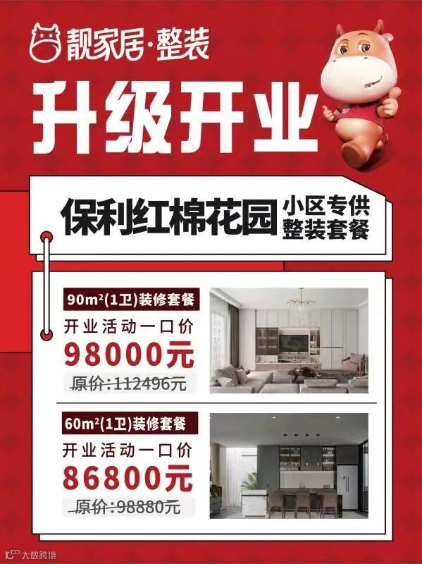 本次开业活动,我们专门制定了小区一口价专属套餐,仅参加开业活动的小区业主抢购,数量有限,先到先得!