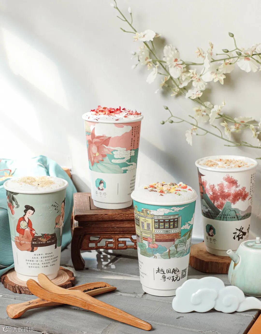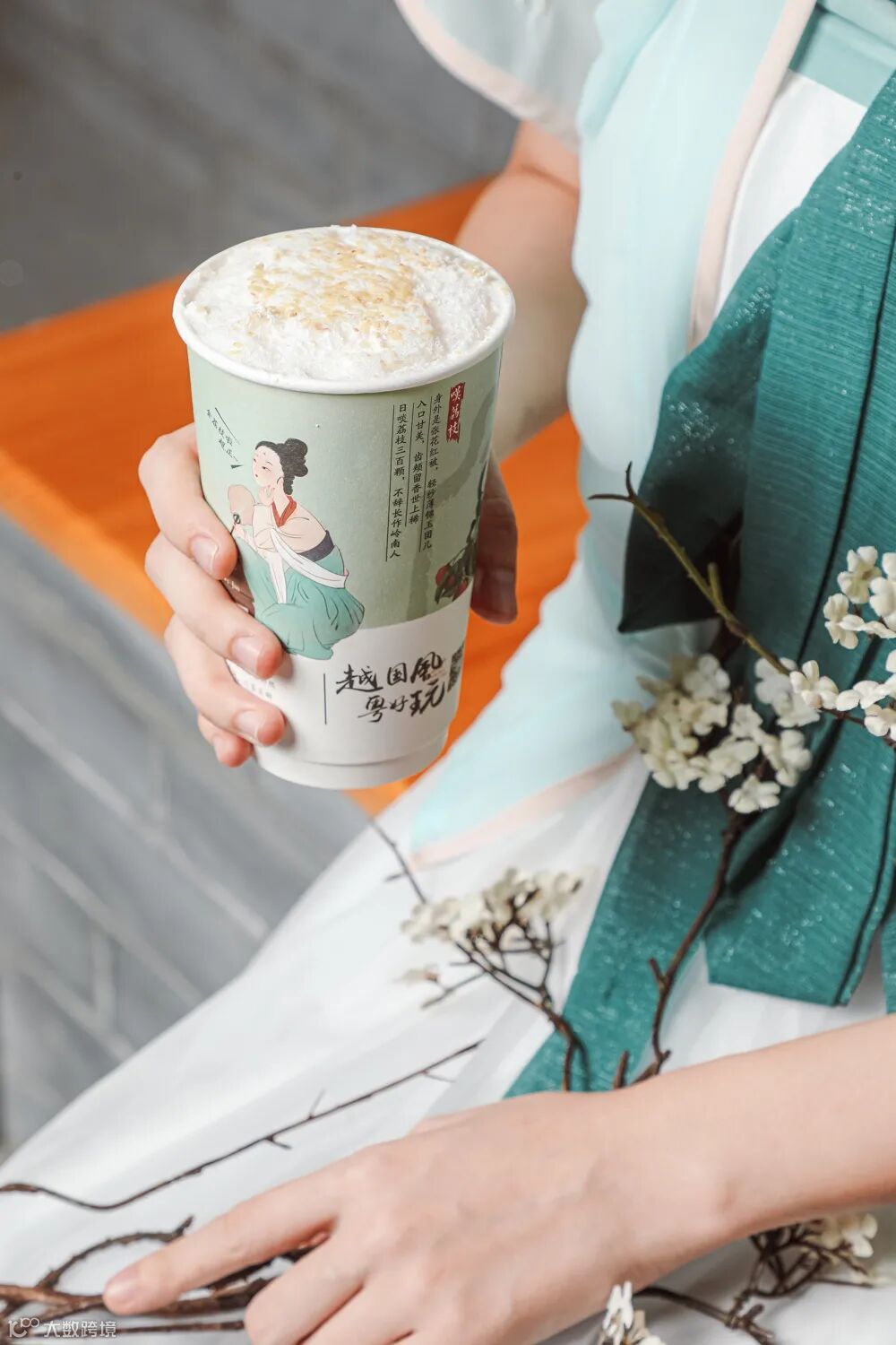 门店大面积云集使用中国风元素,原木色的桌椅、滴水檐、古典窗花、陆羽制茶工艺……顺便来这里身穿汉服,打卡拍照,收揽彩虹屁是下一秒的事情。