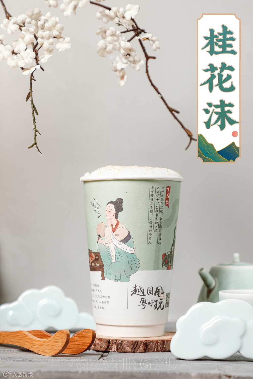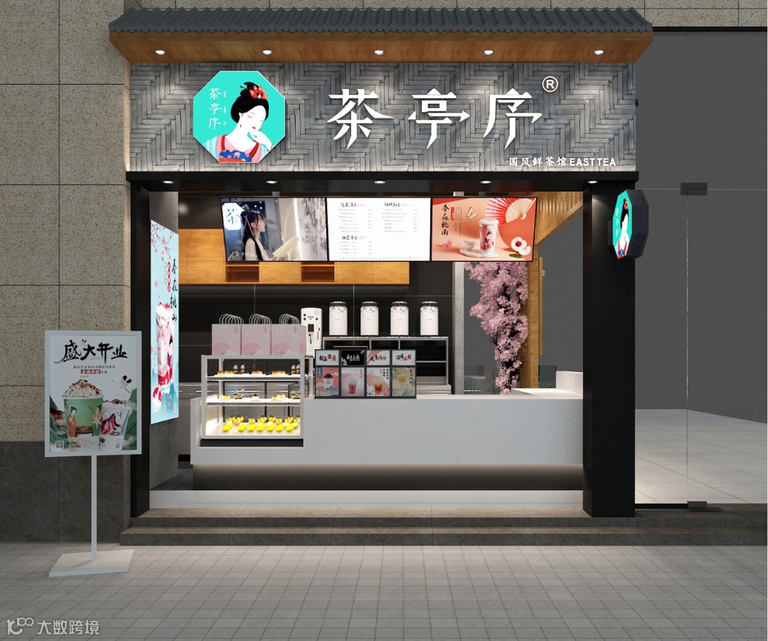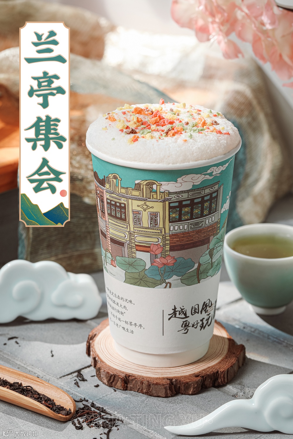 茶亭序国风鲜茶馆,是来自广东本土设计师的原创品牌,以《兰亭序》为创作背景,打造“春花秋月,不及鲜茶一杯”的茶饮空间。