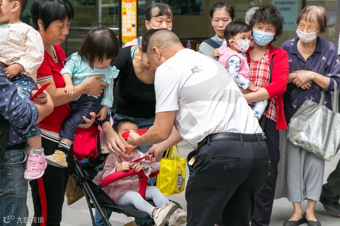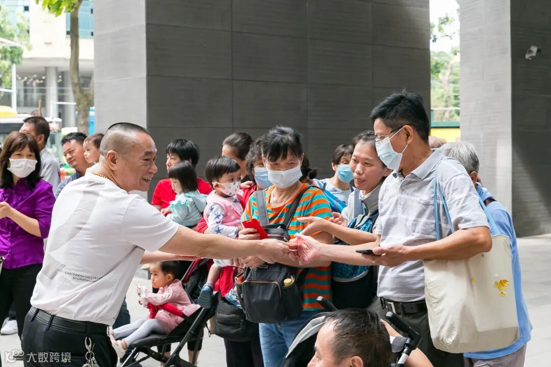 随后老板手持开门利是,为排队等候的街坊四邻,派发寓意着好彩头的利是红包,并送出温暖祝福!领到红包的老广们个个喜笑颜开,现场一片欢声笑语!