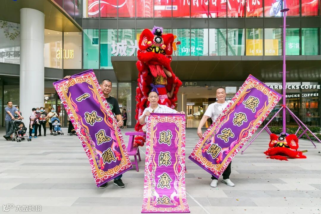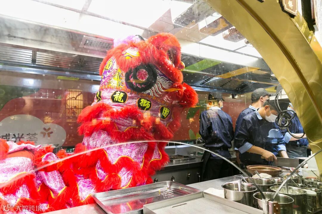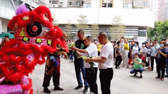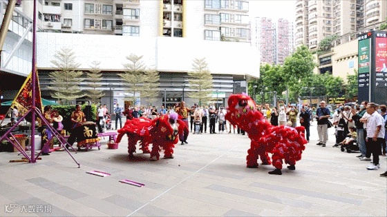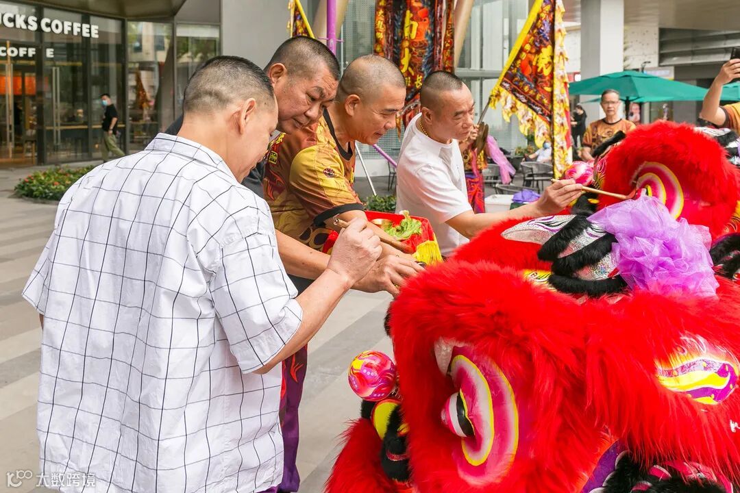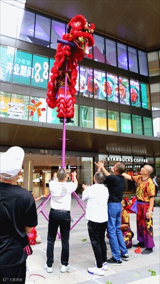 在一片热闹沸腾的喧天锣鼓声中,向群的老板为醒狮画上点睛之笔,一场精彩绝伦的舞狮表演便随之展开。