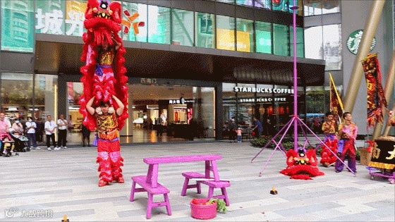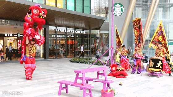 表演进入到了高潮阶段,接下来便是寓意着好彩头的瑞狮送福与采青环节!