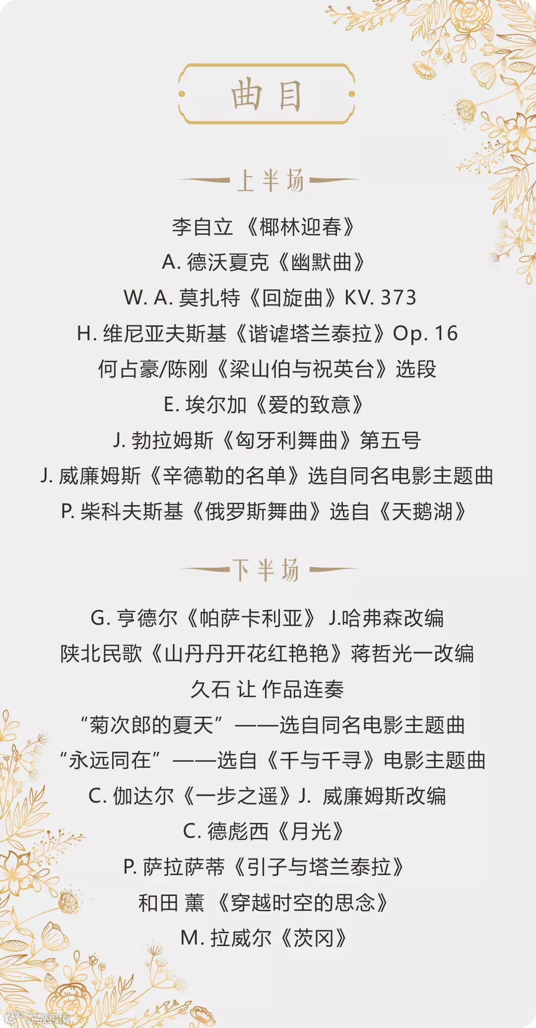 3、于12月16日早上11:00留言点赞数最高的前四名,可获得《高参郑慧中外名曲新年音乐会》门票1张!