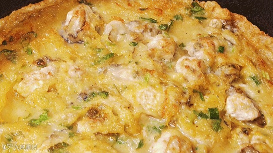 滚烫的铁锅内,饱满的蚝仔像一颗颗大珍珠镶嵌在混合蛋液的混合饼底内,隔着屏幕都能闻到香!
