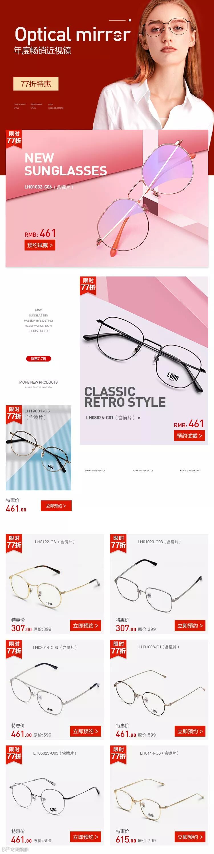 ②年度畅销近视镜,77折特惠