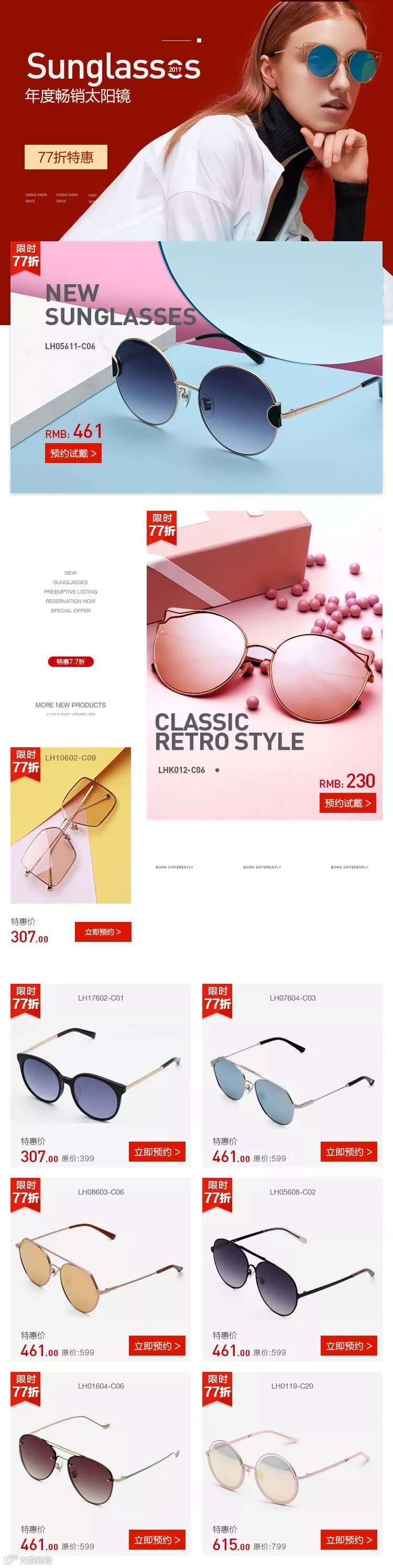 ①年度畅销太阳镜,77折特惠