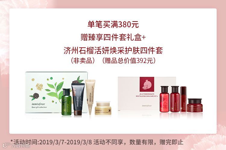 赠臻享四件套礼盒+济州石榴活妍焕采护肤四件套