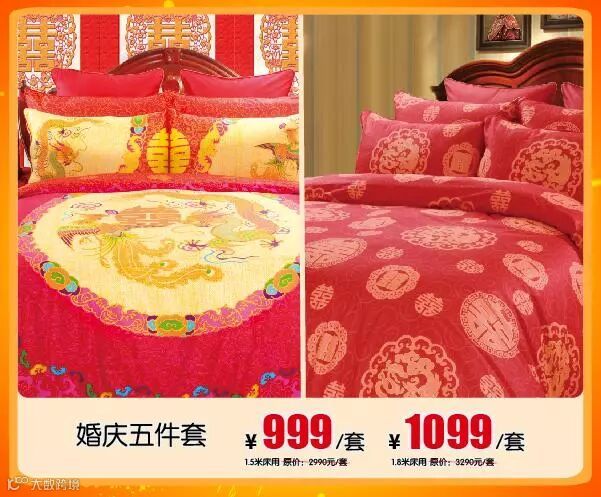 雅芳婷婚庆系列,为新婚佳人打造唯美婚床:中式经典红色配上吉祥的鸾凤和鸣图案,诉说对TA浓浓的爱。