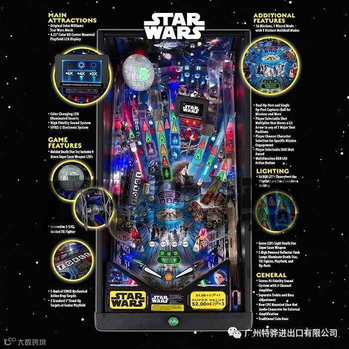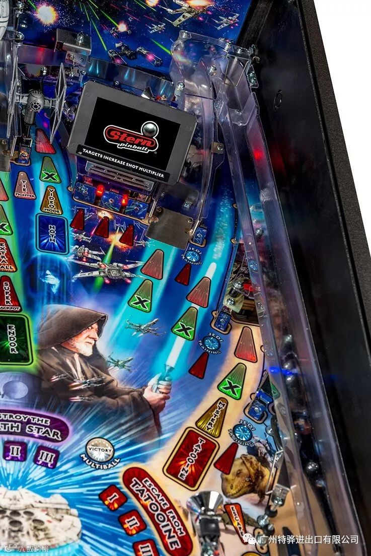 The STARWARS pinball is a Star Wars movie themed game. Players can choose 4 Movie tasks to complete separately, with classic movie scene music. In the course of the game, a small two screen on the machine will replay the classic movie scene according to the process of the game. The game board is installed with all kinds of movie props to let the player in it.
