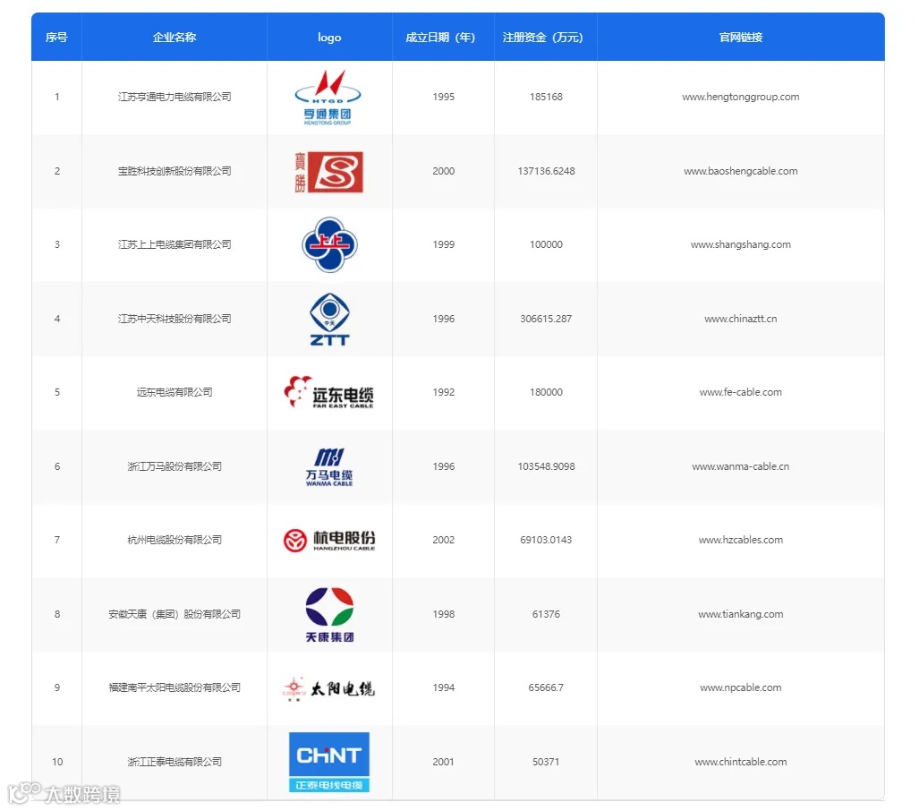 、上上、中天、远东、万马、杭电、天康、太阳、正泰。