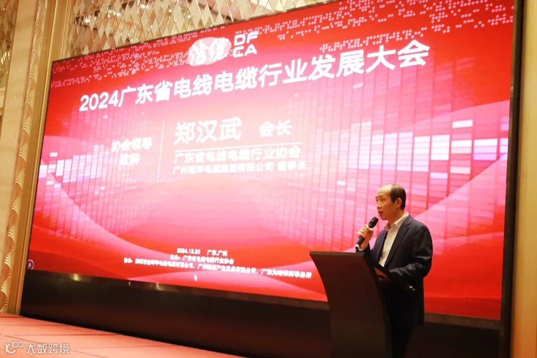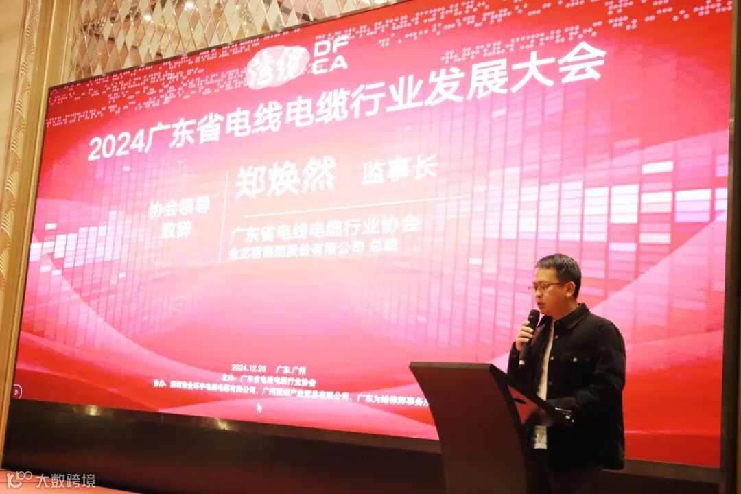 中国电器工业协会电线电缆分会秘书长黄国飞讲话,肯定了广东省电线电缆行业在全国的重要地位,并对行业未来发展提出期望,强调创新与质量把控的重要性。