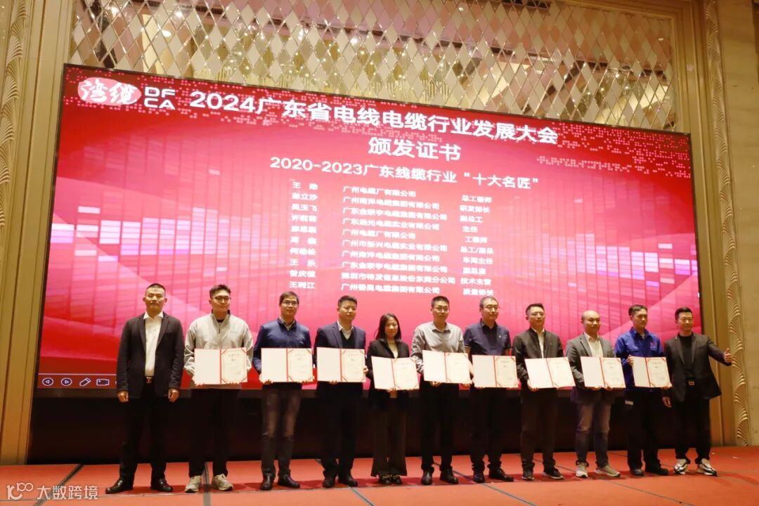 现场,广州南洋电缆集团有限公司副总经理李楷东、东莞市民兴电缆有限公司总经理杨彦、深圳市成天泰电缆实业发展有限公司执行董事陈耿锋等10位行业精英,获得了2020-2023广东线缆行业“十大杰出青年”的称号。